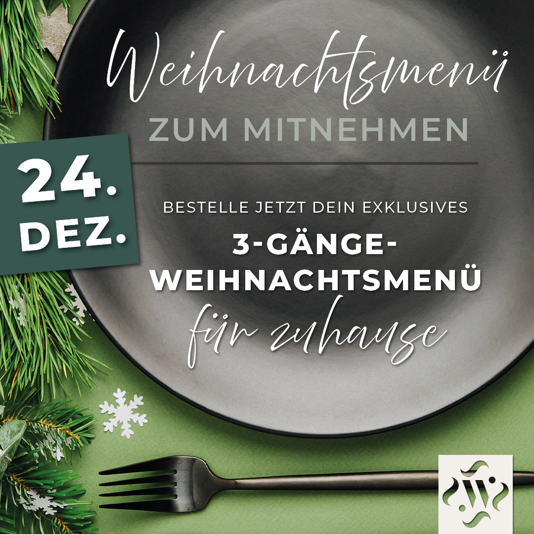 Am 24. Dezember könnt ihr euch unser exklusives 3-Gänge-Weihnachtsmenü ganz einfach mit nach Hause nehmen. Perfekt für alle, die an Heiligabend lieber genießen statt kochen.